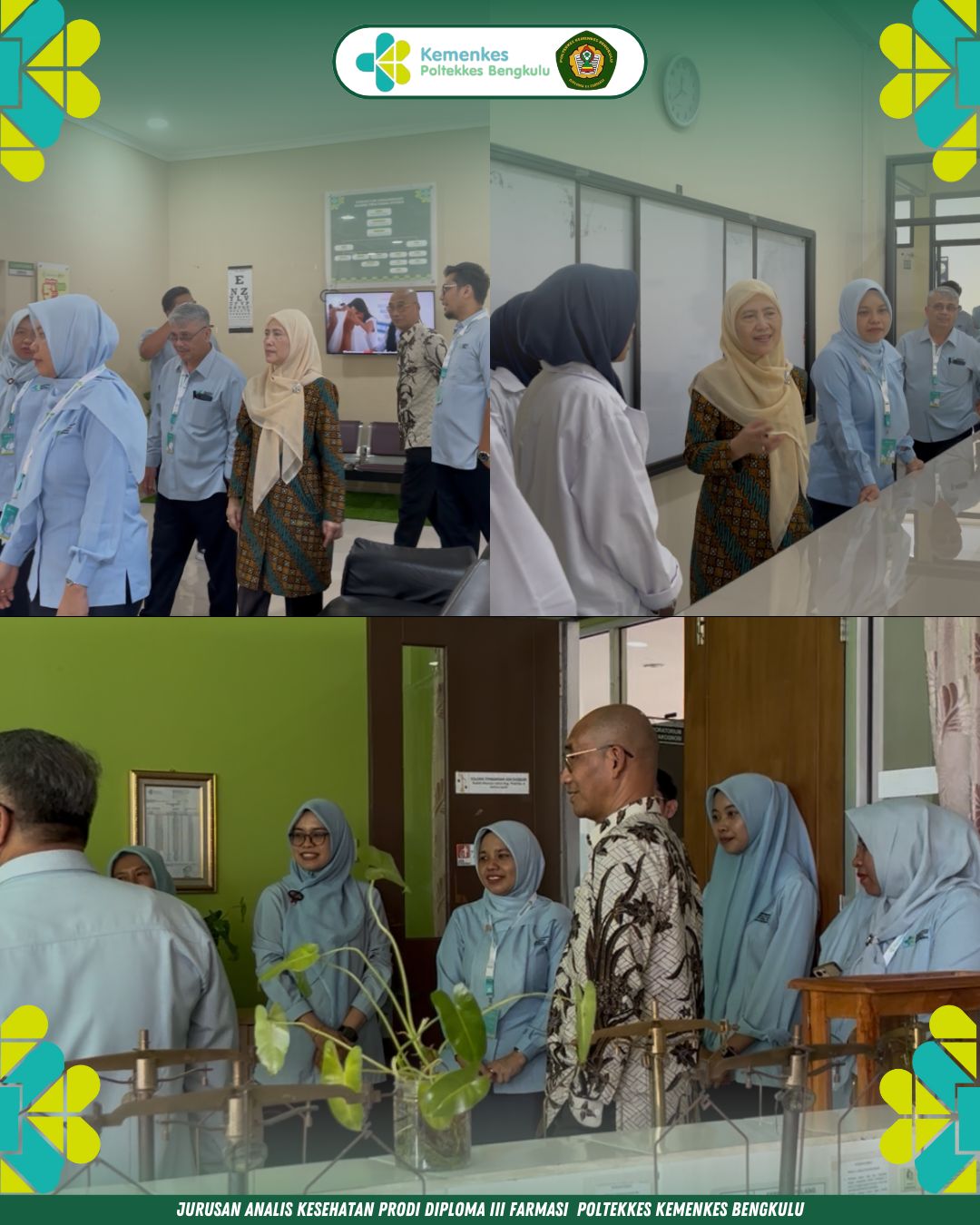 Seluruh rangkaian kegiatan berlangsung dengan lancar dan penuh antusiasme. Melalui proses akreditasi ini, diharapkan Program Studi Diploma III Farmasi Poltekkes Kemenkes Bengkulu dapat terus meningkatkan kualitas penyelenggaraan pendidikan dan menghasilkan tenaga teknis kefarmasian yang profesional, kompeten, dan siap bersaing di dunia kerja.